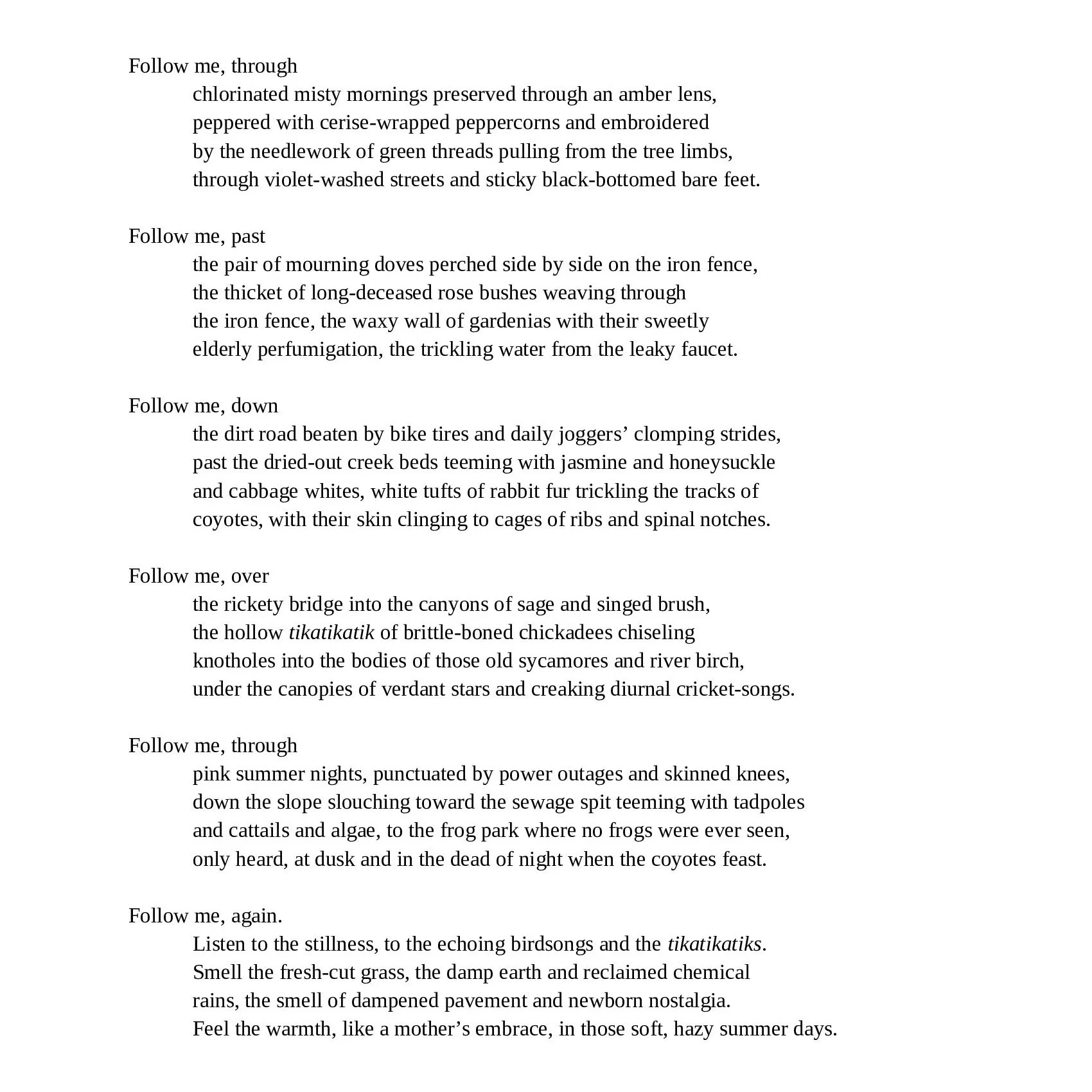 Meghan Haydon is a writer from Southern California. She studied creative writing at the University of Washington, where her focus was in poetry, prose, and novel writing. She is currently working on her first novel. Apart from writing, Meghan loves to surf, paint, and watch horror movies.