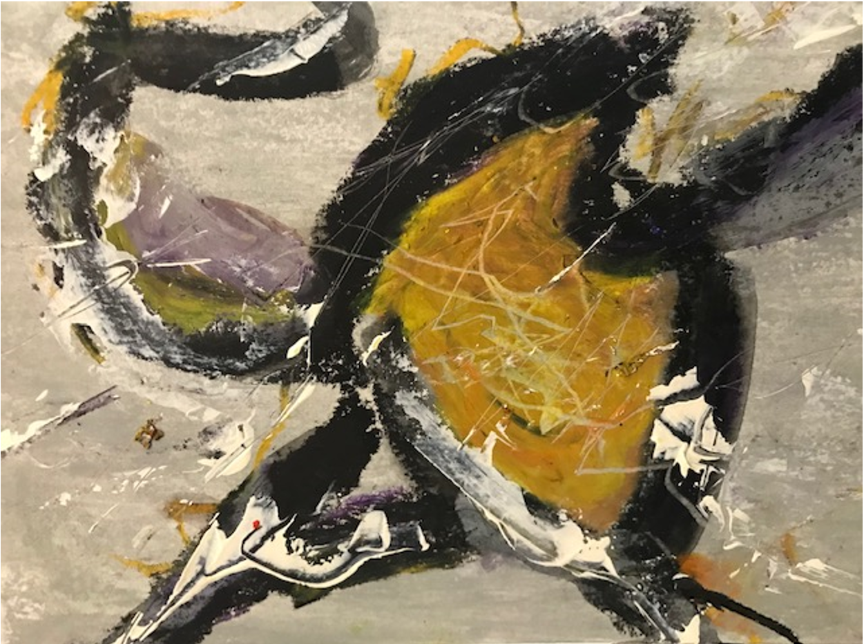 acrylic and mixed media on paper. 9 x 11”. 2021