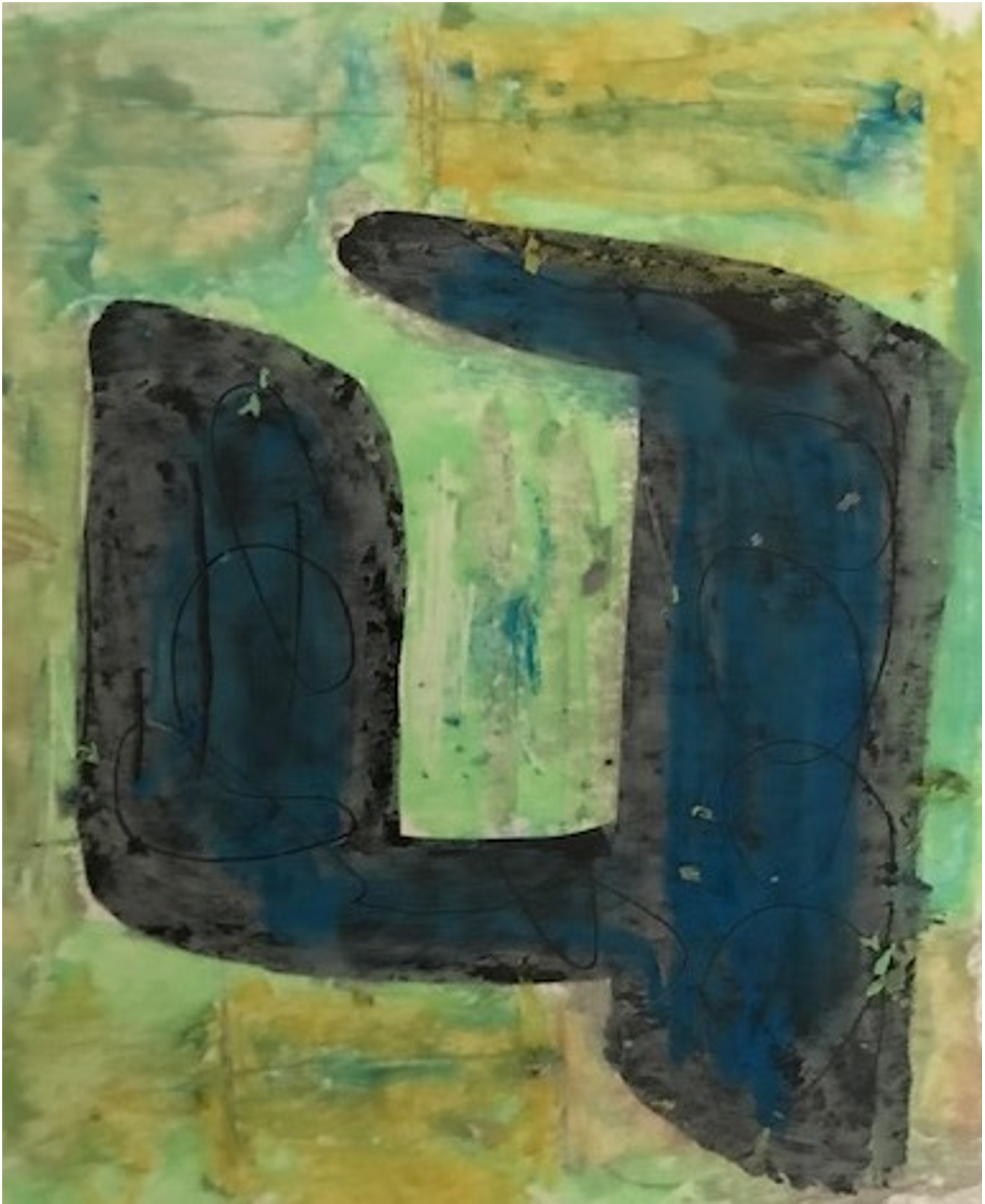 These six abstract works are meant to be experienced as omens or signs that can be read. The marks and shapes are inspired by street repairs, broken sidewalks, the walls of old buildings, and body scars and wounds. As a piece takes shape, it is imbued with color and movement that is bold and energetic yet offers a sense of healing.